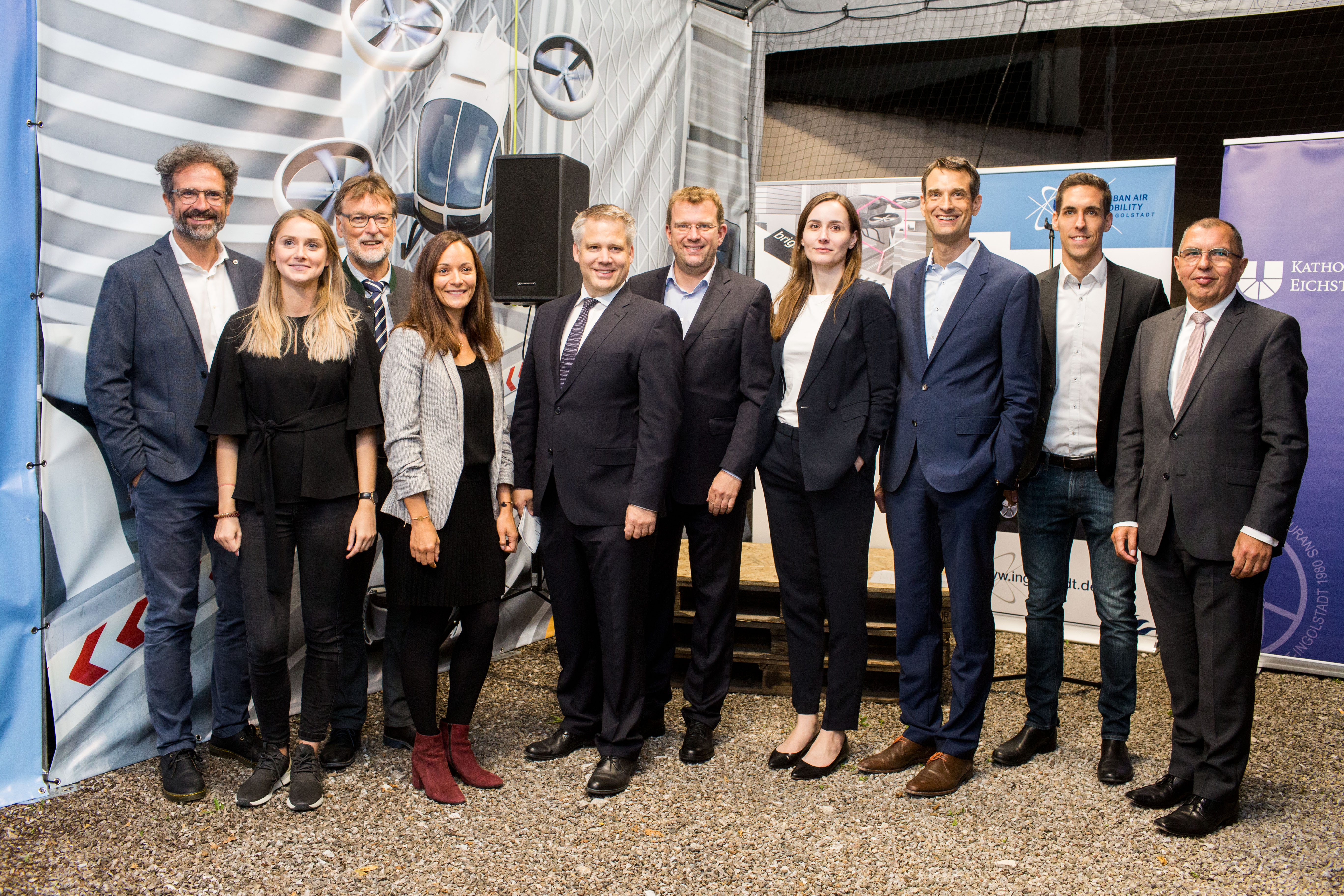 (v.l.) Dr. Franz Glatz und Projektmitarbeiterin Lisa Zill (brigk), der Pfaffenhofener Landrat Martin Wolf, Projektmitarbeiterin Bianca Krauser und Oberbürgermeister Dr. Christian Lösel von der Stadt Ingolstadt, Bundestagsabgeordneter Dr. Reinhard Brandl, KU-Mitarbeiterin Frederica Janotta, KU-Vizepräsident Prof. Dr. Jens Hogreve, Daniel Baumann und Stadtdirektor Hans Meier von der Stadt Ingolstadt. (Fotos: Klenk/upd)