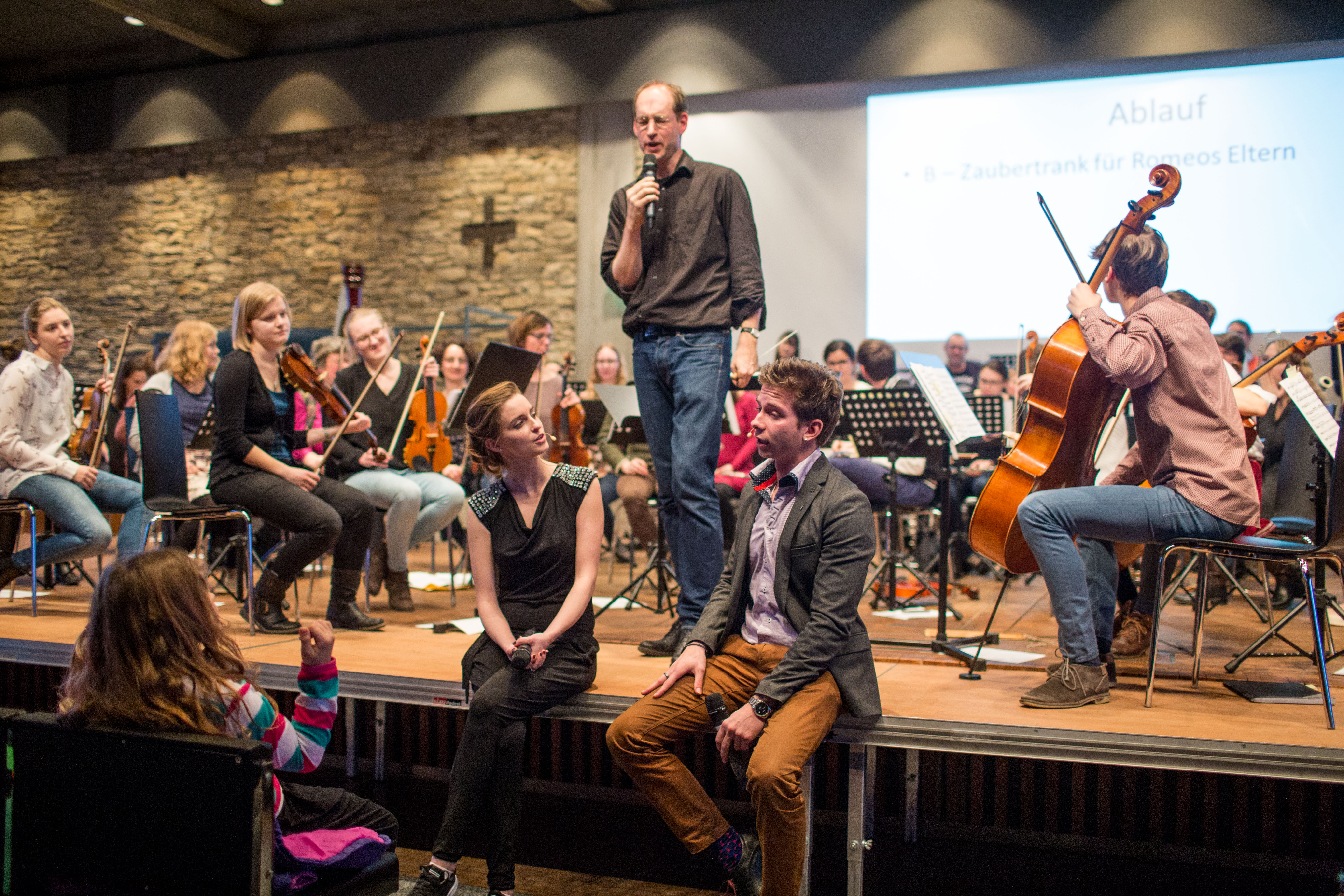 Das Sinfonieorchester der KU führt am 28. Januar 2018 im Rahmen eines Kinderkonzertes in der Aula der Universität die Geschichte von "Romeo und Julia" neu vertont und mit neuen Wendungen auf. Die Handlung dürfen die jungen Zuhörer selbst vorschlagen. Trauriger Schluss oder Happy End? - abgestimmt wird mit grünen und roten Karten. Anschließend spielt das Orchester unter der Leitung von Uwe Sochaczewsky die zur Szene passende Musik von Giuseppe Verdi und Peter Tschaikowsky. Nachgespielt wird die Geschichte von den Moderatoren Theresa Hürdler und Leon Gaube.