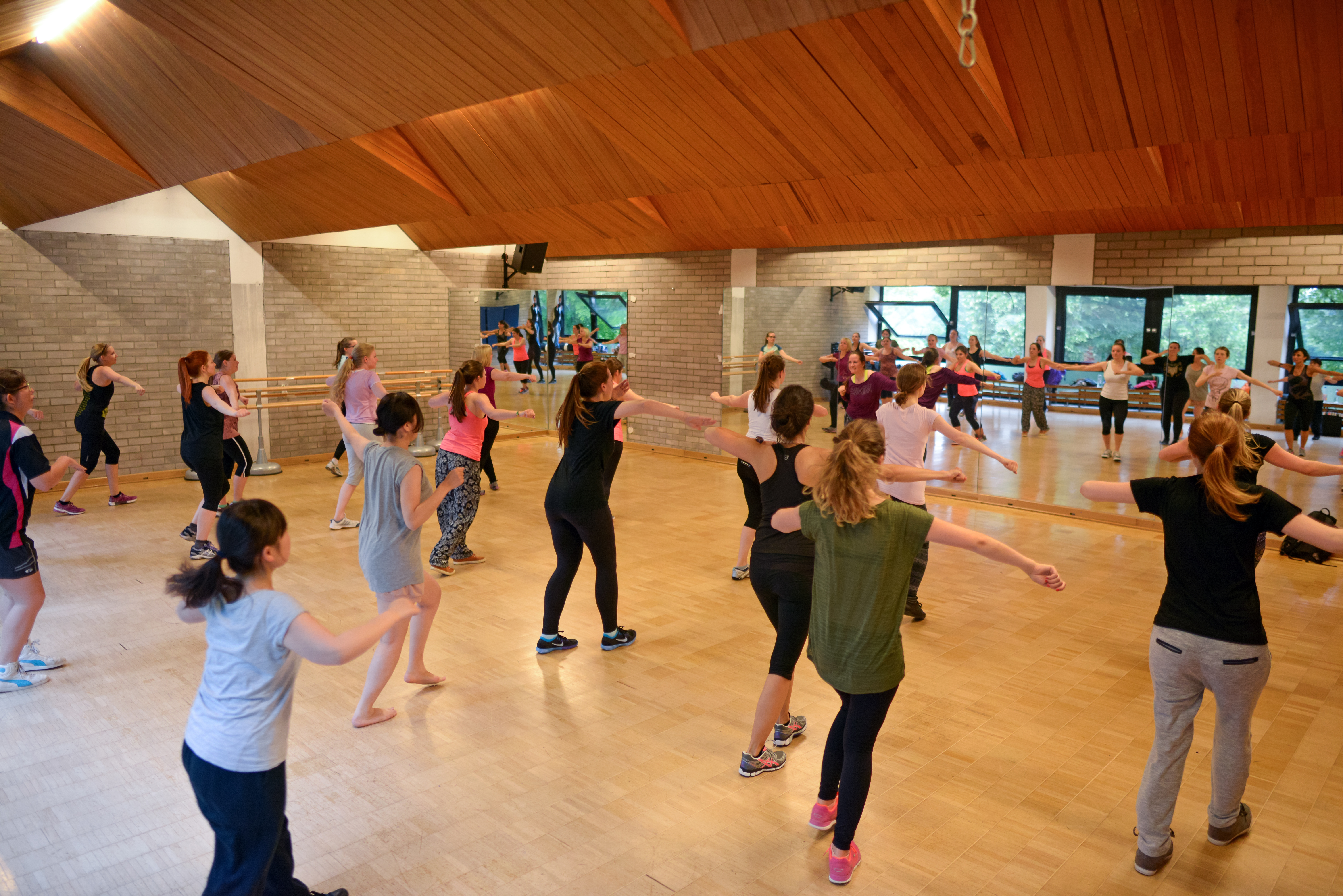 Studierende beim Sport im Gymnastikraum an der KU