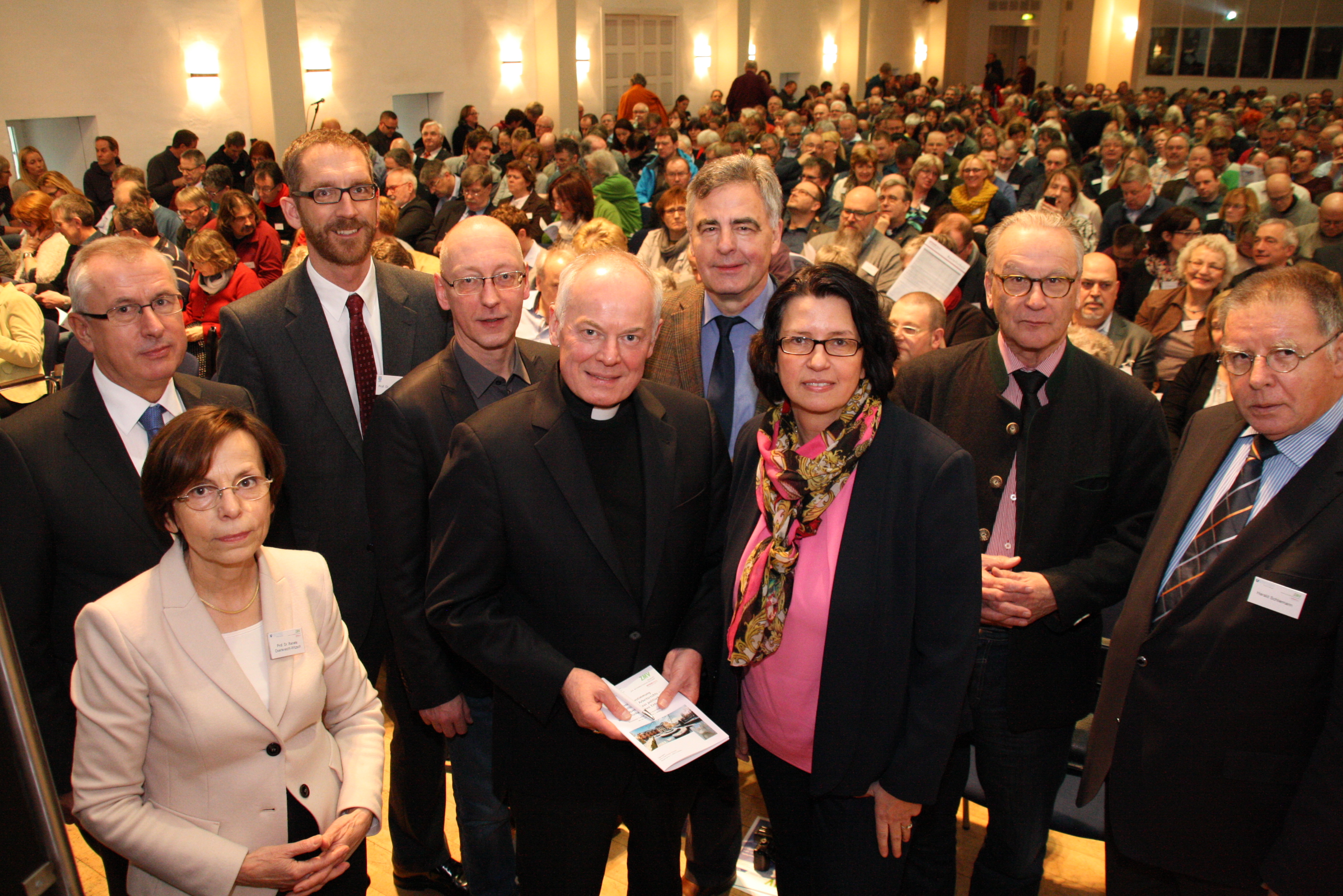 (v.l.) Detlev Fey (Referatsleiter Arbeitsrecht und Organisationsberatung bei der EKD) und die Organisatorin Prof. Dr. Renate Oxenknecht-Witzsch (Fakultät für Soziale Arbeit an der KU) gemeinsam mit Prof. Dr. Jacob Joussen (Arbeits- und Sozialrecht, Universität Bochum), Prof. Dr Uwe Becker (Diakoniewissenschaft, Ev. Fachhochschule Bochum), Weihbischof Dr. Dr. Anton Losinger (Vorsitzender des Stiftungsrates der KU), Dr. Heinz-Jürgen Kalb (Präsident des Kirchlichen Arbeitsgerichtshofes, Bonn), Uni-Präsidentin Prof. Dr. Gabriele Gien, Prof. Dr. Reinhard Richardi (ehem. Präsident des Kirchlichen Arbeitsgerichtshofes) sowie der ehemalige Justizminister von Thüringen und frühere Präsident des