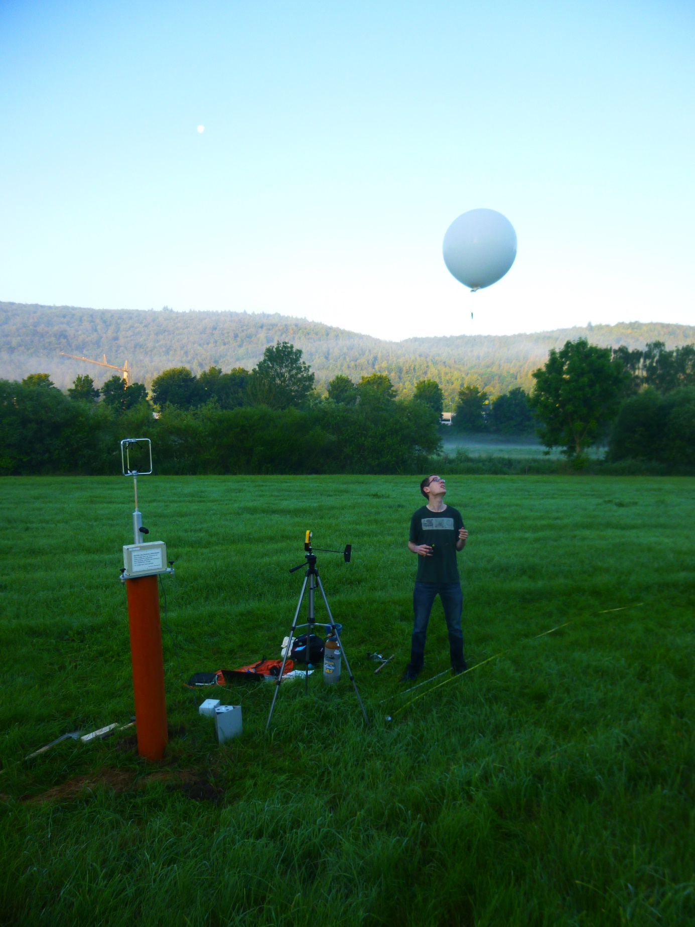 Wie viel kalte Luft fließt nachts die Hänge des Altmühltals hinab? Mithilfe von Heliumballons geht Christoph Beier, Geographiestudent der Katholischen Universität Eichstätt-Ingolstadt, dieser Frage nach, die relevant ist für planerische Zwecke: zum Beispiel in Bezug auf das Lokalklima und die Luftqualität sowie für den Anbau von frostempfindlichen Ertragspflanzen. Betreut wird Beier bei seiner Masterarbeit von Prof. Dr. Susanne Jochner (Professorin für Physische Geographie / Landschaftsökologie und nachhaltige Ökosystementwicklung). An den Ballons befestigt ist ein knapp 20 Gramm leichtes Messgerät, welches die Änderung der Temperatur, Luftfeuchte und des Drucks im Sekundentakt registriert.