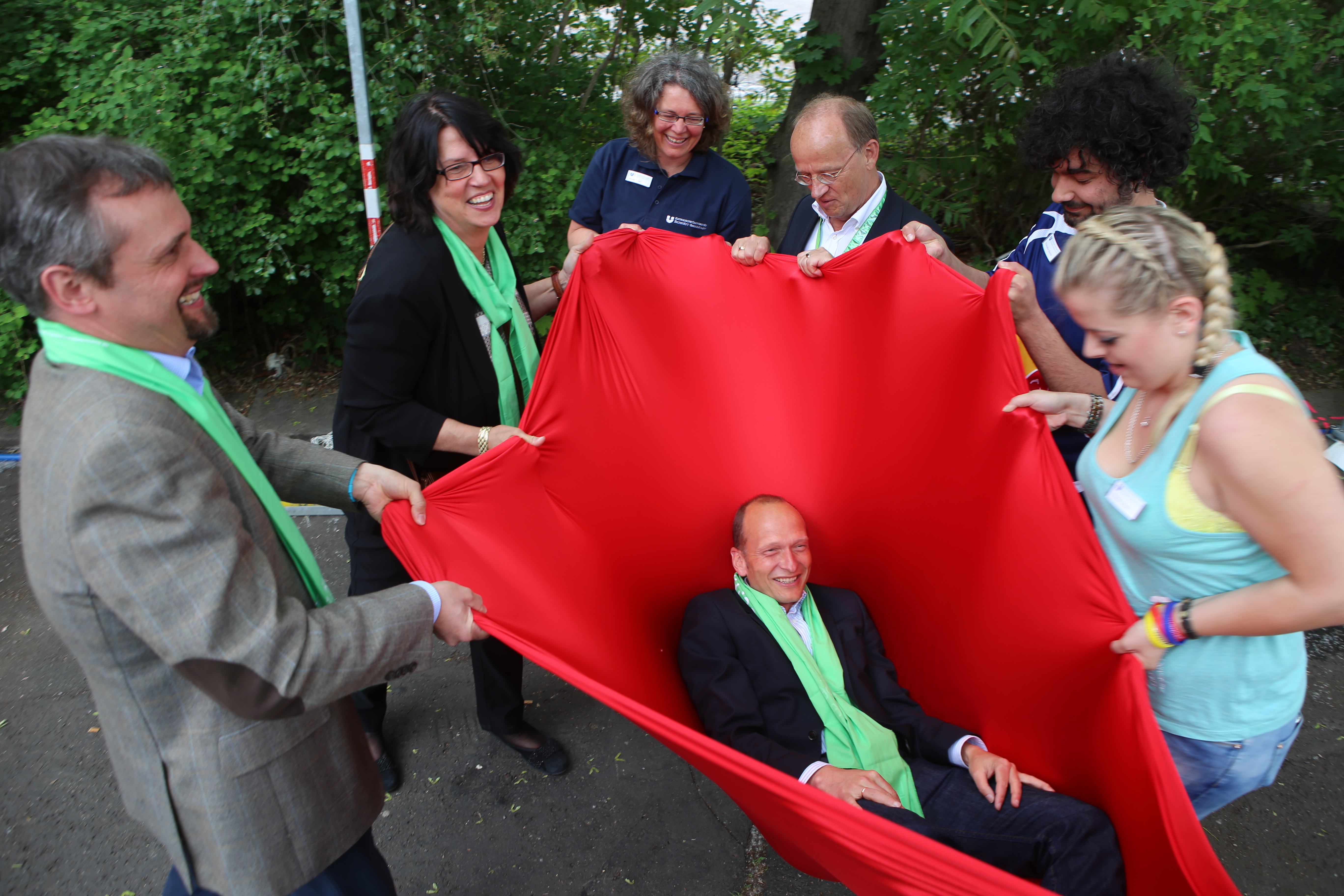 Erlebnispädagogik der Religionspädagogen: KU-Kanzler Thomas Kleinert in der Hängematte