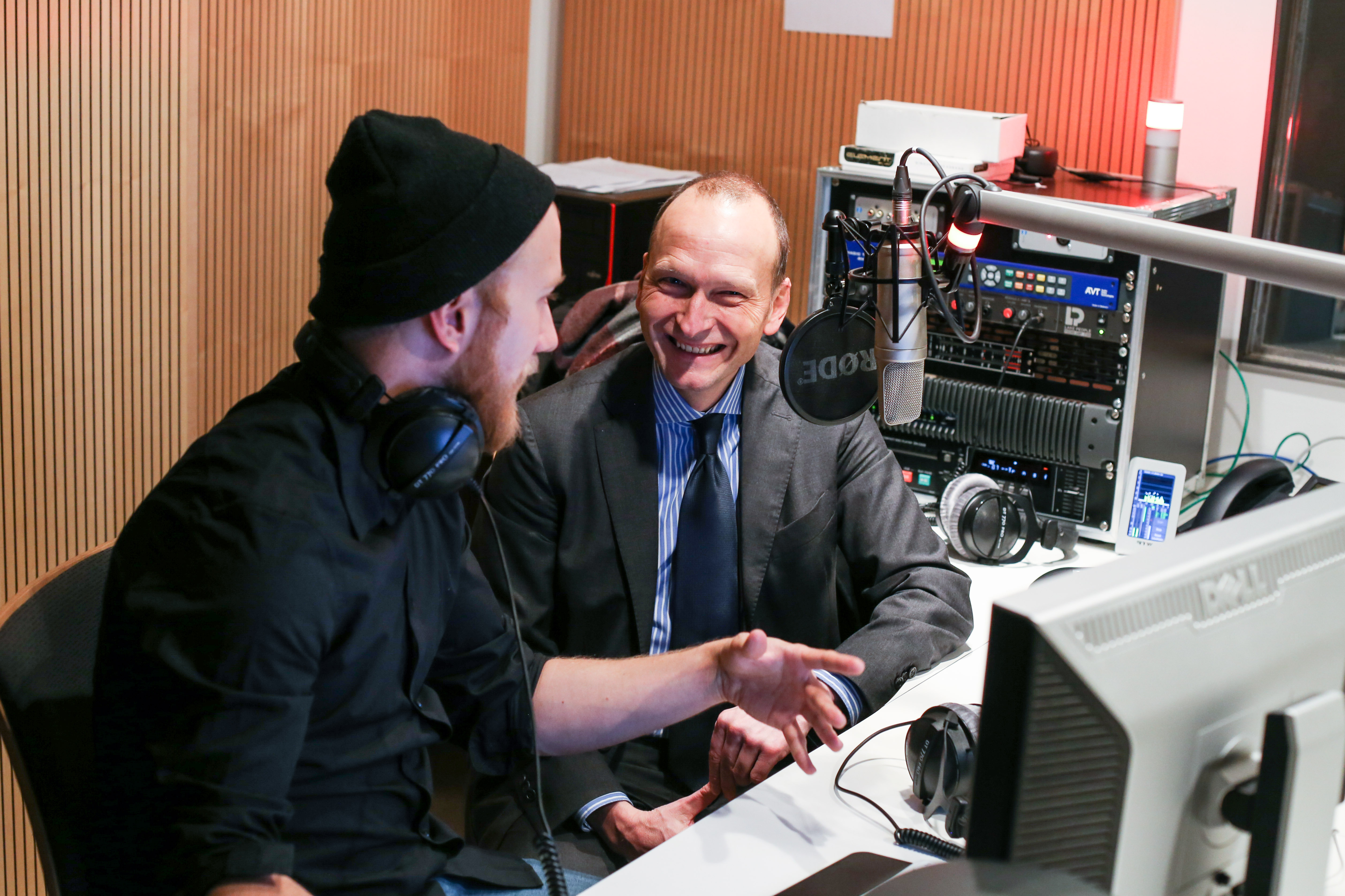 Kanzler Kleinert (rechts) lässt sich die Technik erklären.