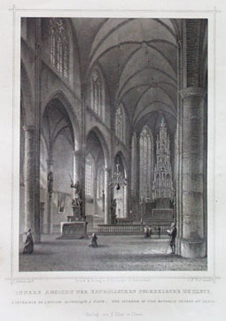 Innere Ansicht der katholischen Pfarrkirche zu Cleve = L'intérieur de l'eglise catholique à Cleve = The interior of the katholic (!) church at Cleve
