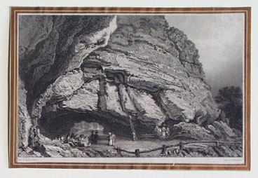[Ansicht einer Felswand mit Durchgang, davor und darinnen zahlreiche Besucher; die Felswand vorne voller Inschriften]
