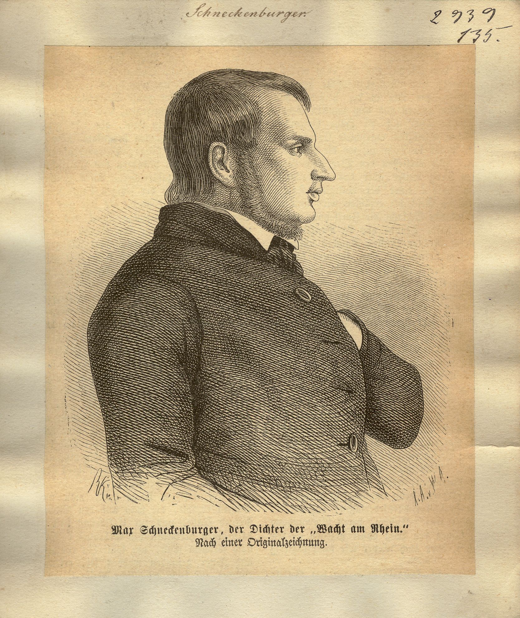 der Dichter der "Wacht am Rhein" ; Nach einer Originalzeichnung ; [Halbfigur im Profil nach rechts]