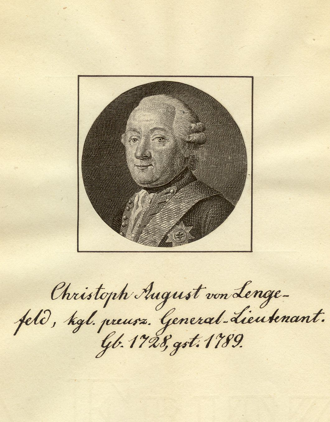 kgl. preusz. General-Lieutenant ; Gb. 1728, gst. 1789 ; [Brustbild nach links]