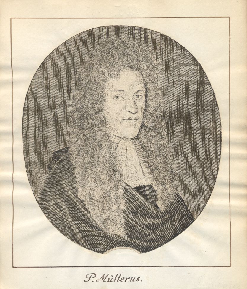 [ICt. Heredit. in Moderwiz et Leitenthal, Consiliari. Saxon. in Acad. Ienensi Antecess Cur. Provinc. Scabinat. ac Colleg. Iuridici Assessor] ; [Brustbild im Oval nach rechts]