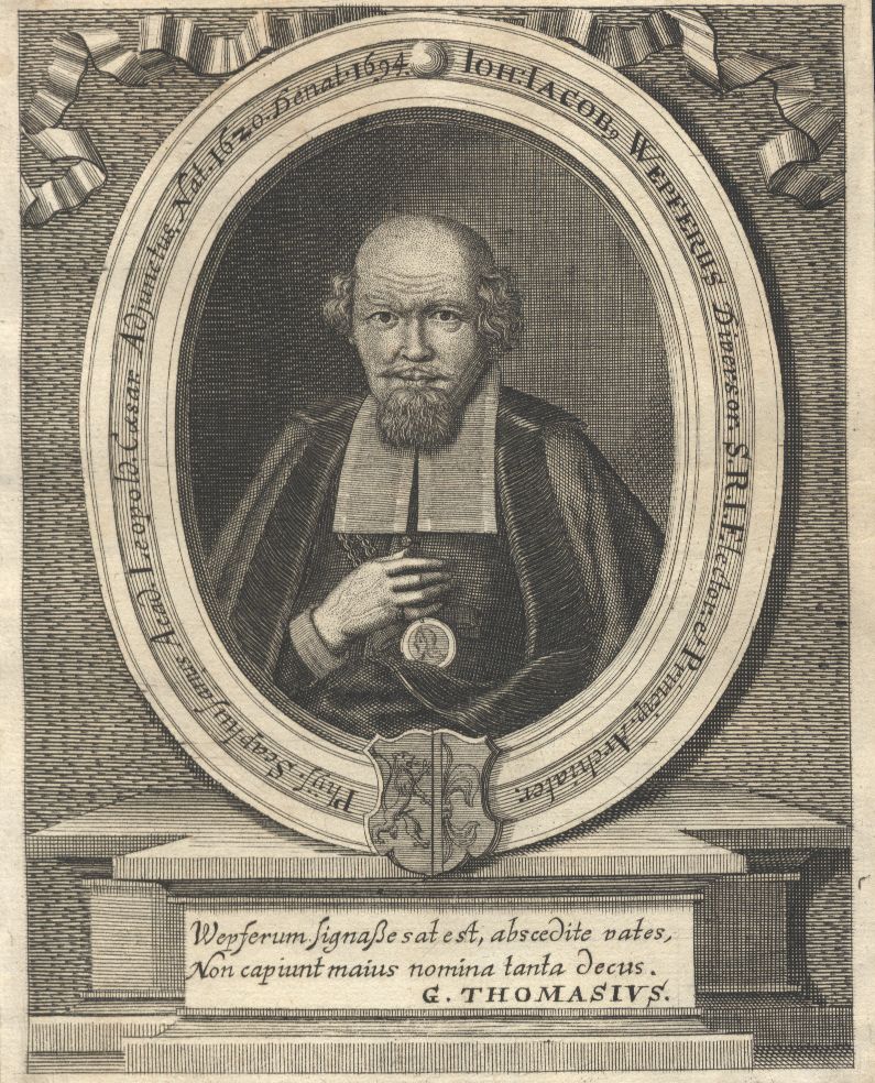 Diversor. S. R. I. Elector. et Princip. Archiater. Phys. Scaphusanus Acad. Leopold. Caesar. Adjunctus ; Nat. 1620 Denat. 1694 ; [Fast Halbfigur im Oval]