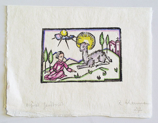 Holzschnitt oder Linolschnitt, farbig; ca. 8 x 12 cm. - MIT DIGITALAUFNAHME