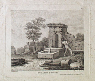 [Knabe an einem Brunnen in Landschaft, umgeben von Architekturresten]