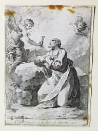 Radierung auf Pergament; ca. 22 x 15 cm (mit Schrift). - Plattenrand ringsum beschnitten. - Mit handgemaltem Goldrand. - Fleckig. - MIT DIGITALAUFNAHME