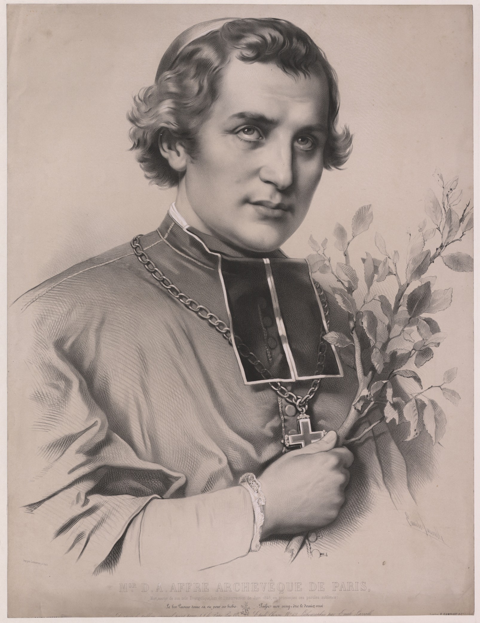 Mort, martyr de son zèle Evangélique, lors de l'insurrection de Juin 1848, en prononcant ces paroles sublimes: "Le bon Pasteur donne sa vie pour ses brebis" . "Puisse mon sang être le dernier versé" ; [Brustbild nach rechts]