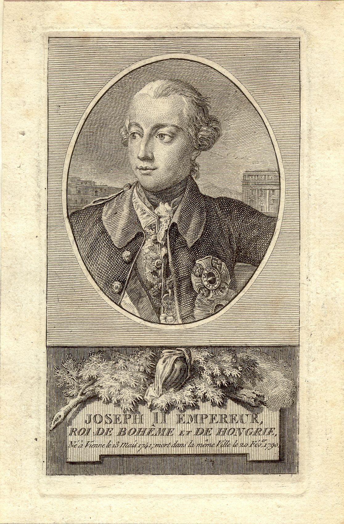 Né à Vienne le 13 Mais [!] 1741, mort dans la même Ville le 20 Fév.er 1790 ; [Brustbild, Kopf nach links]