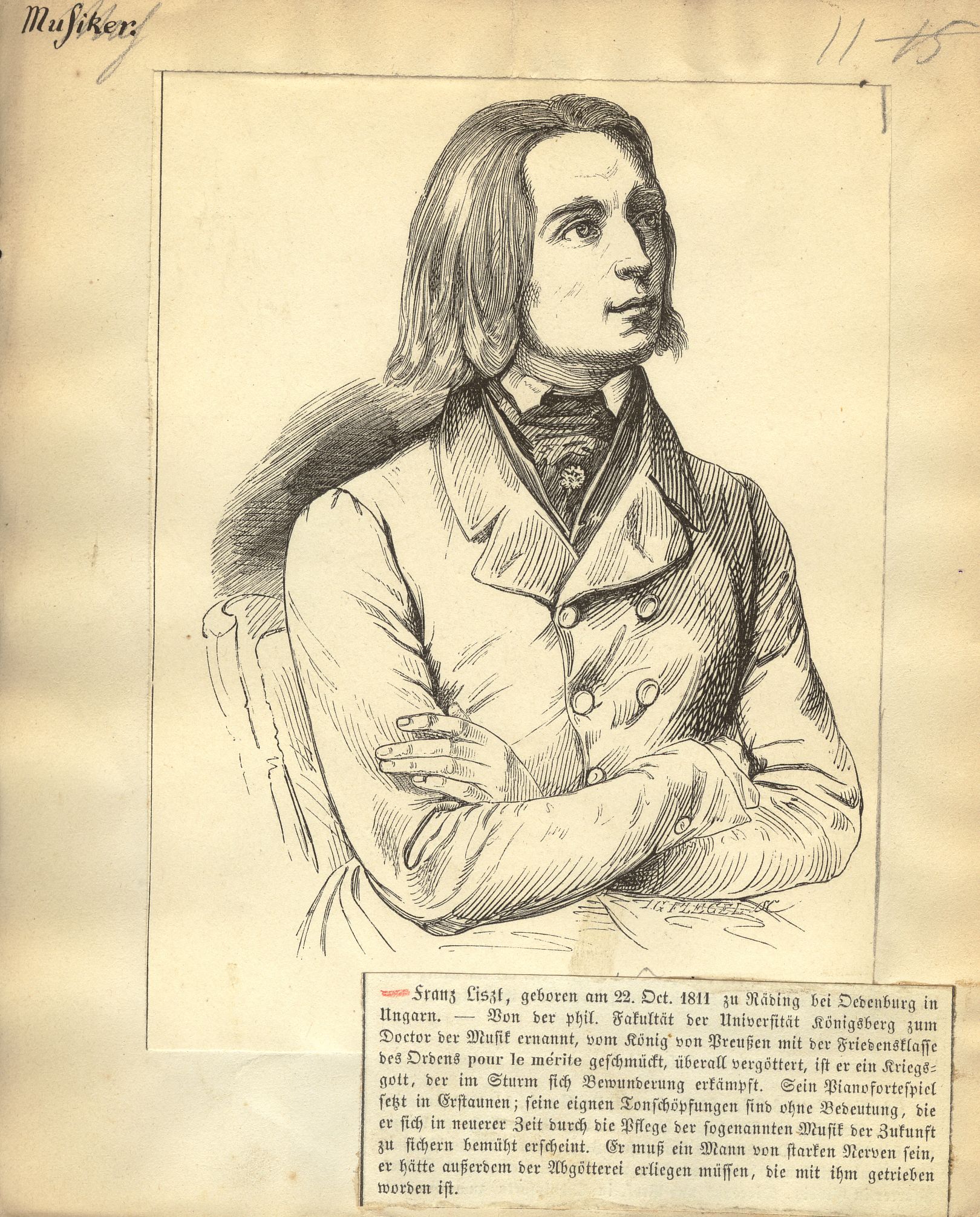 Holzstich; ca. 12,1 x 9,3 cm. - Zusammen mit biographischem Text auf Papier aufgeklebt. - MIT DIGITALAUFNAHME