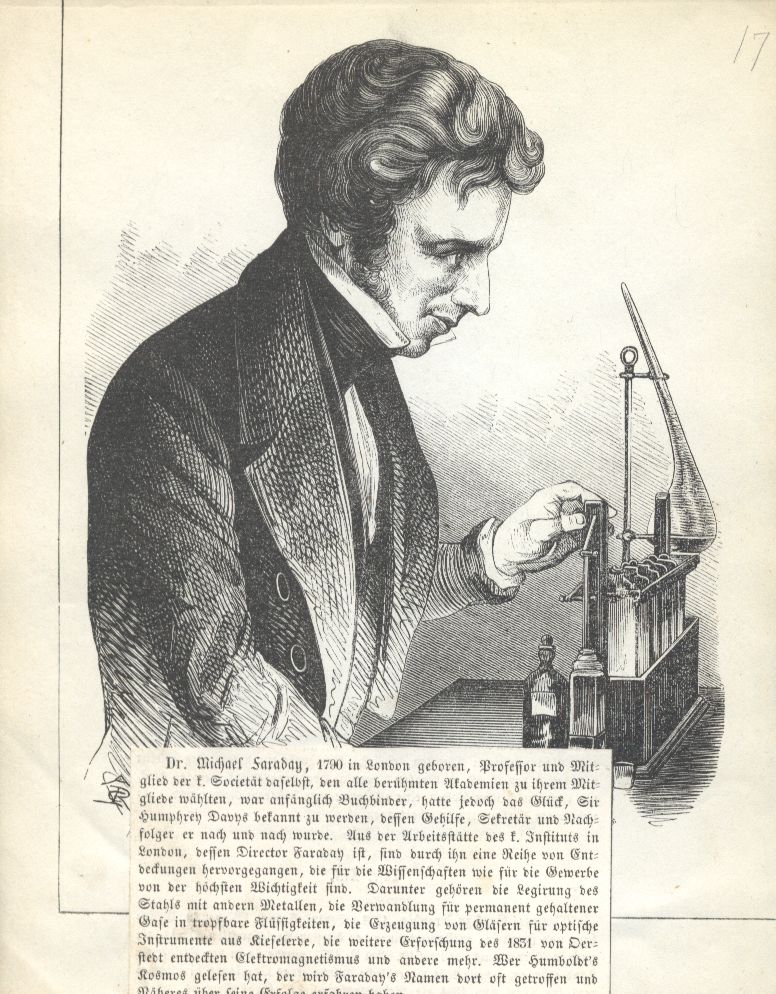 [Halbfigur fast im Profil nach rechts am Experimentiertisch]