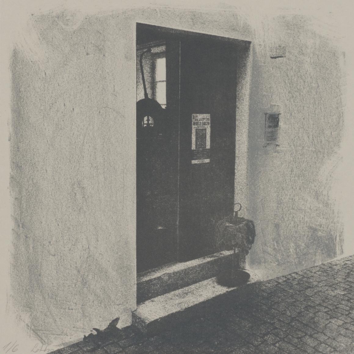 [Blick auf den Eingang der Lithographie-Werkstatt]