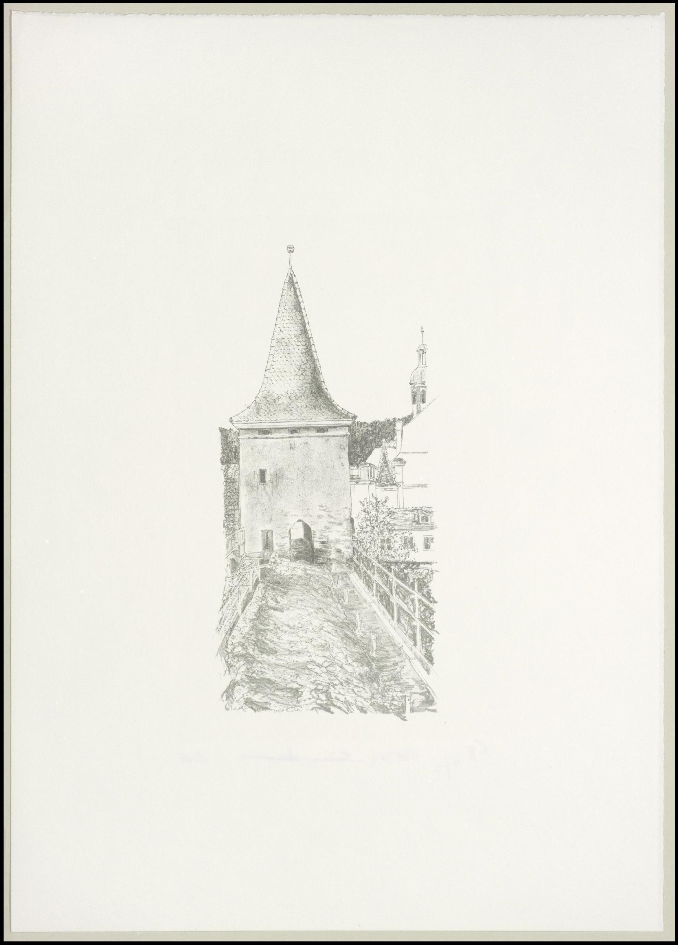 [Blick die Eichstätter Stadtmauer entlang auf den Stadtmauerturm an der Wohlmuthgasse]