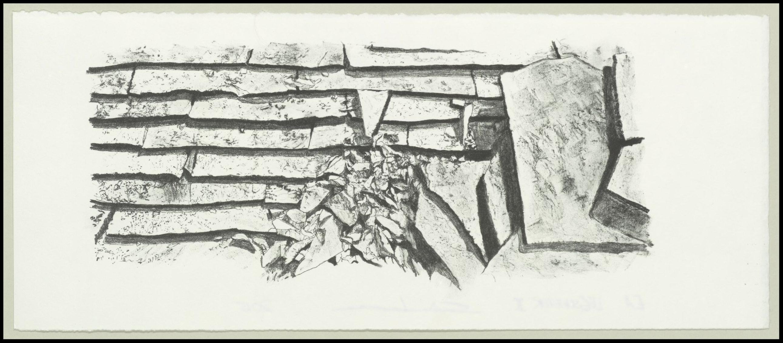 Kreidelithographie; ca. 14 x 31,5 cm (Bild) bzw. 17,7 x 42 cm (Blatt). - Von der Künstlerin auf der Rückseite bezeichnet, datiert und signiert. - MIT DIGITALAUFNAHME