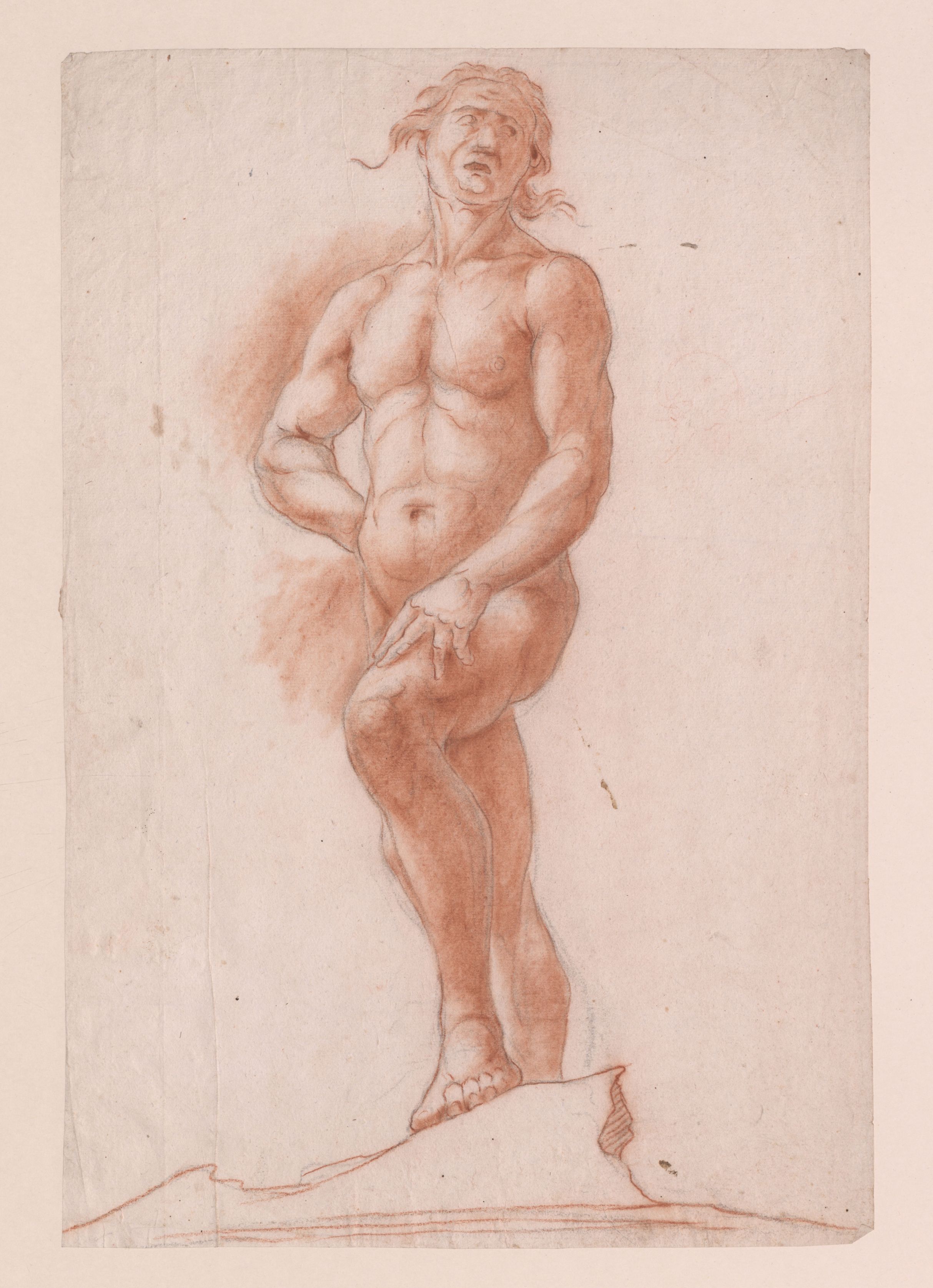 Rötel über Bleistift; 43,8 x 29,6 cm (Blatt). - Faltig und fleckig. - MIT DIGITALAUFNAHME