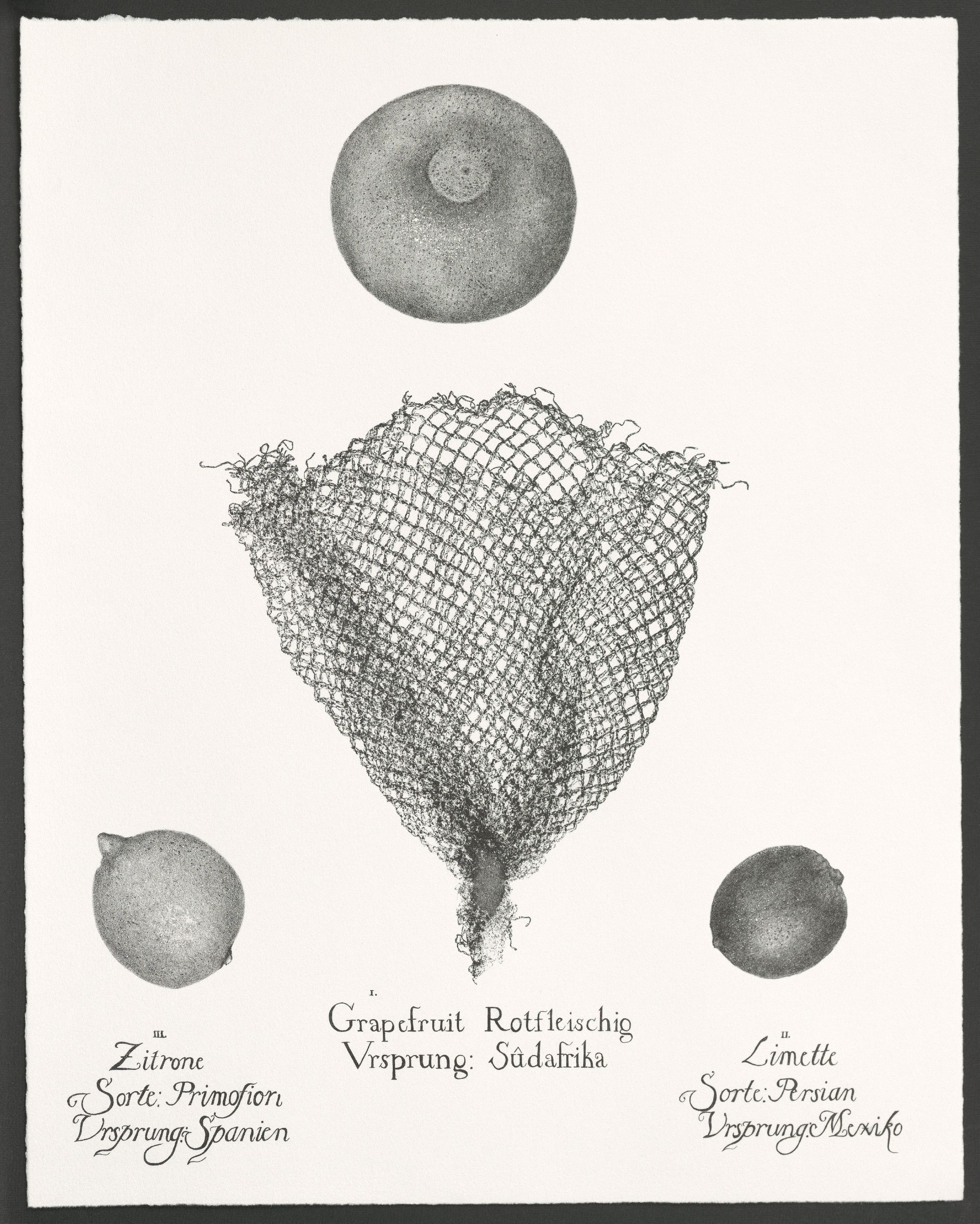 Kreidelithographie (Früchte) und Umdruck (Netz); 50 x 39,5 cm (Blatt). - Von der Künstlerin auf der Rückseite mit Bleistift bezeichnet, numeriert (1/10) und signiert. - MIT DIGITALAUFNAHME