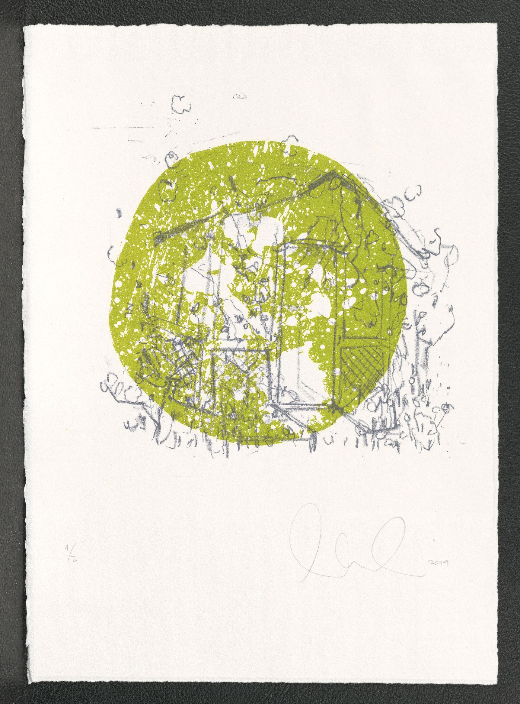 Lithographie, zweifarbig; ca. 20,7 x 20,4 cm (Bild) bzw. 37,5 x 27 cm (Blatt). - Von der Künstlerin mit Bleistift datiert, numeriert (1/2) und signiert. - MIT DIGITALAUFNAHME