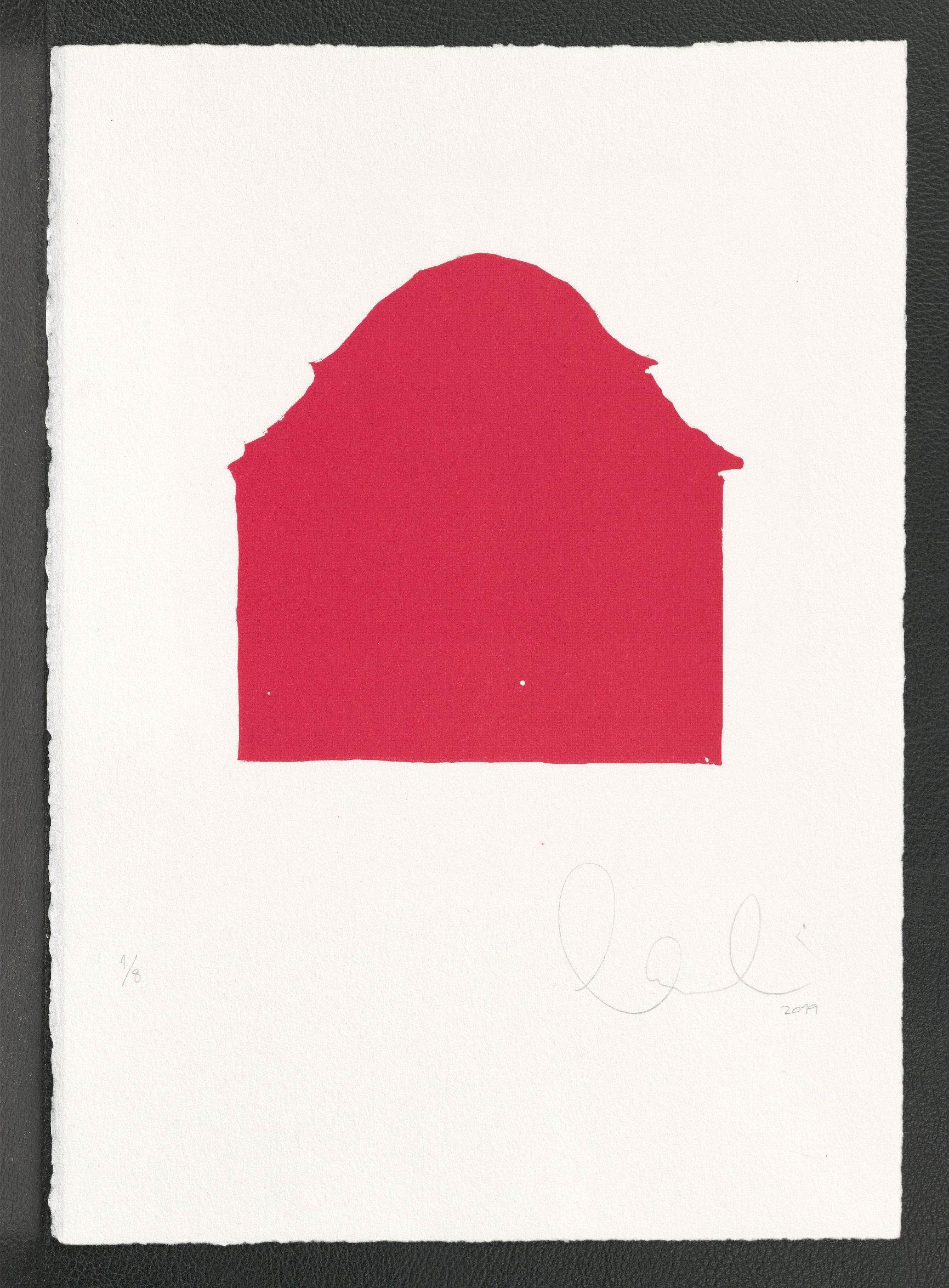 Lithographie in rot; ca. 16 x 16,2 cm (Bild) bzw. 37,5 x 26,8 cm (Blatt). - Von der Künstlerin mit Bleistift datiert, numeriert (1/8) und signiert. - MIT DIGITALAUFNAHME