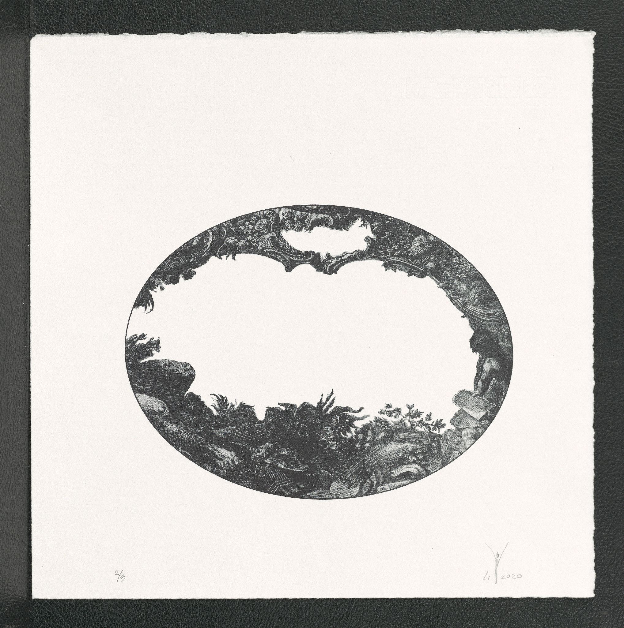Lithographie (1 Passage); 16,5 x 21,7 cm (Bild, oval) bzw. 31,8 x 31,5 cm (Blatt). - Von der Künstlerin mit Bleistift datiert, numeriert (2/3) und signiert. - MIT DIGITALAUFNAHME