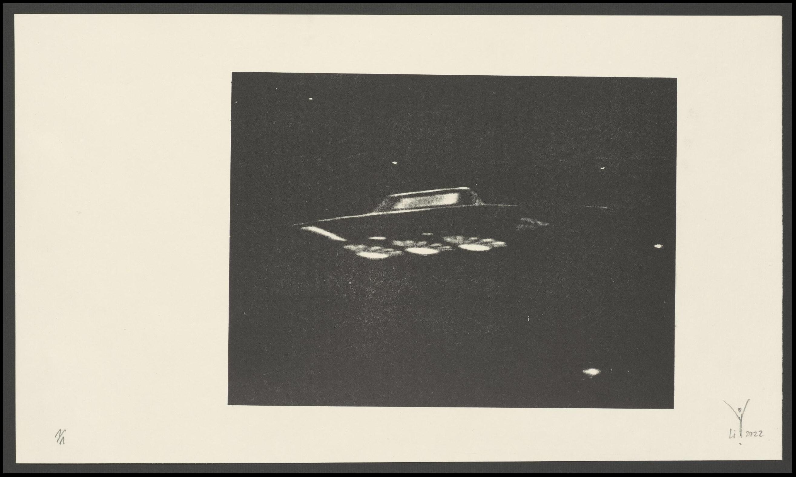 Lithographie (1 Passage: Umdruck eines Fotos); 18,5 x 24,8 cm (Bild) bzw. 24,9 x 42,8 cm (Blatt). - Von der Künstlerin mit Bleistift auf der Rückseite bezeichnet, auf der Vorderseite datiert, numeriert (1/1) und signiert. - MIT DIGITALAUFNAHME