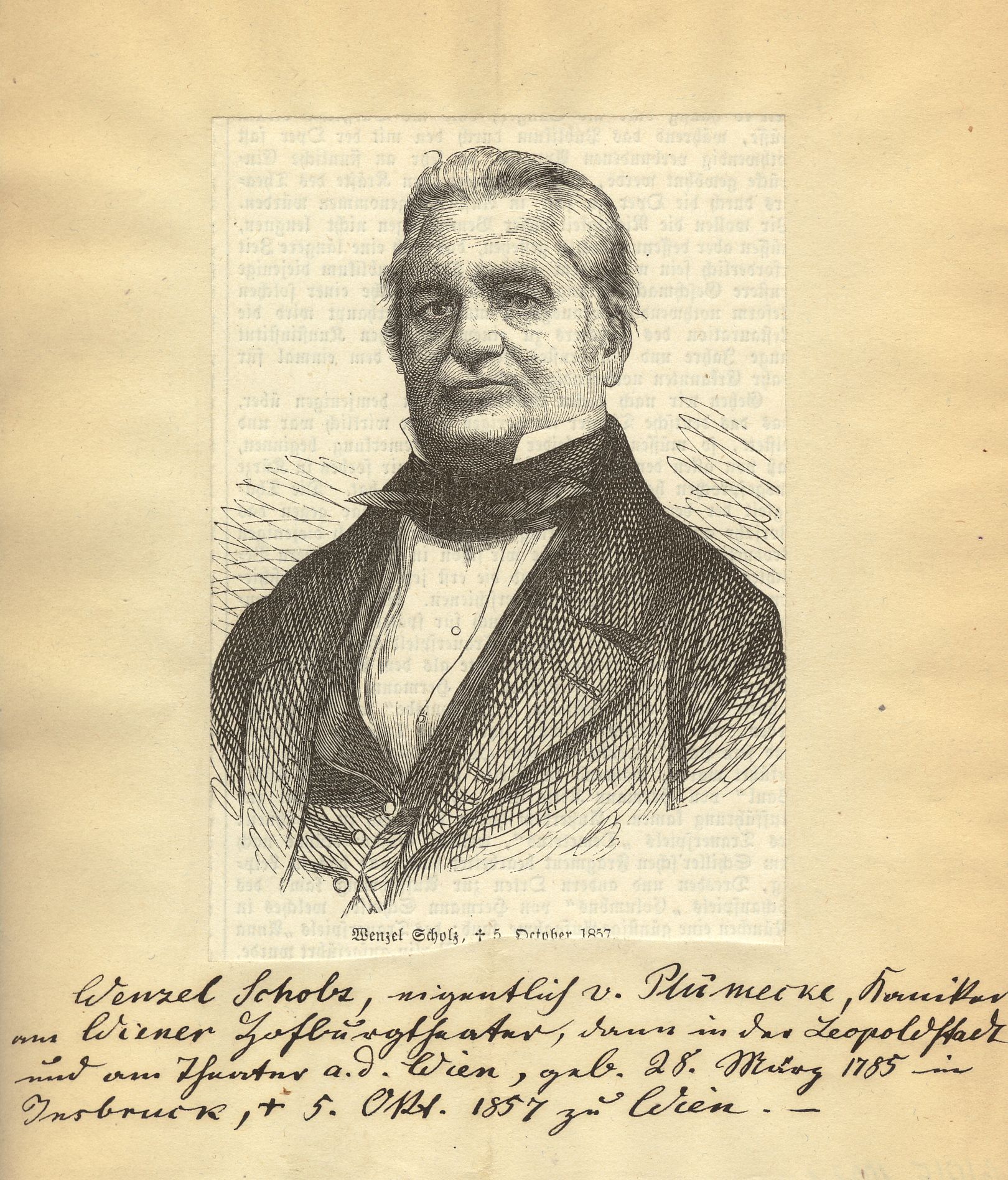 Holzstich; ca. 10,5 x 7,8 cm. - An den Seiten beschnitten, Beschriftung teilweise beschädigt. - Auf Papier mit handschriftlichen biographischen Angaben aufgeklebt. - MIT DIGITALAUFNAHME