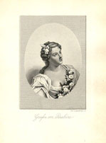 Stahlstich; 7,3 x 5,5 cm (im Oval) bzw. 9 x 6,4 cm (gesamt). - Plattenrand oben und unten beschnitten. - MIT DIGITALAUFNAHME