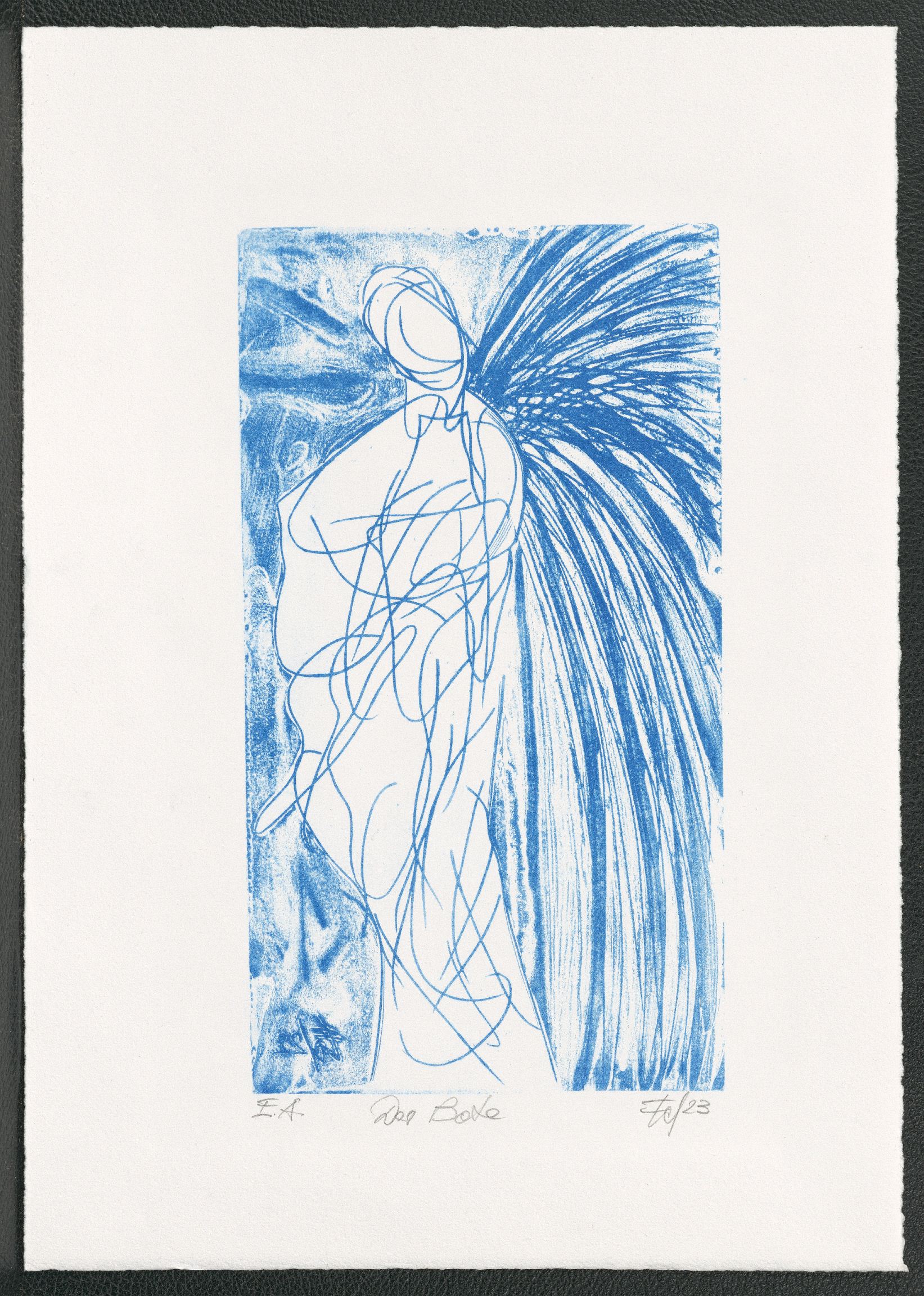 Lithographie in blau; 26,4 x 14,7 cm (Bild) bzw. 37,8 x 26,7 cm (Blatt). - Vom Künstler mit Bleistift bezeichnet, datiert und signiert. - MIT DIGITALAUFNAHME