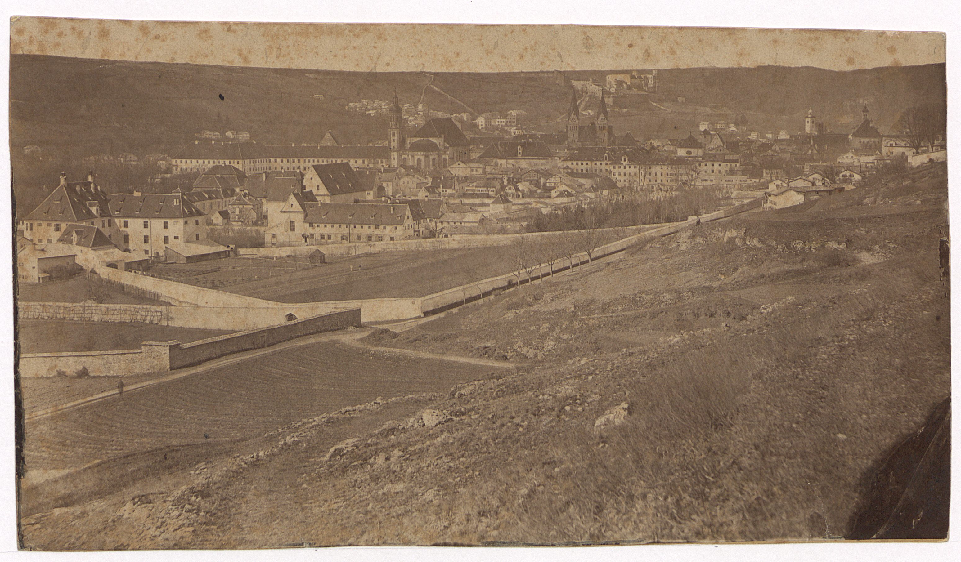 S/W-Fotografie; 14 x 25,5 cm. - Ringsum beschnitten, auf Karton aufgeklebt, stockfleckig. - Beschriftung handschriftlich auf der Rückseite. - Provenienz: Kapuzinerkloster Passau. - MIT DIGITALAUFNAHME