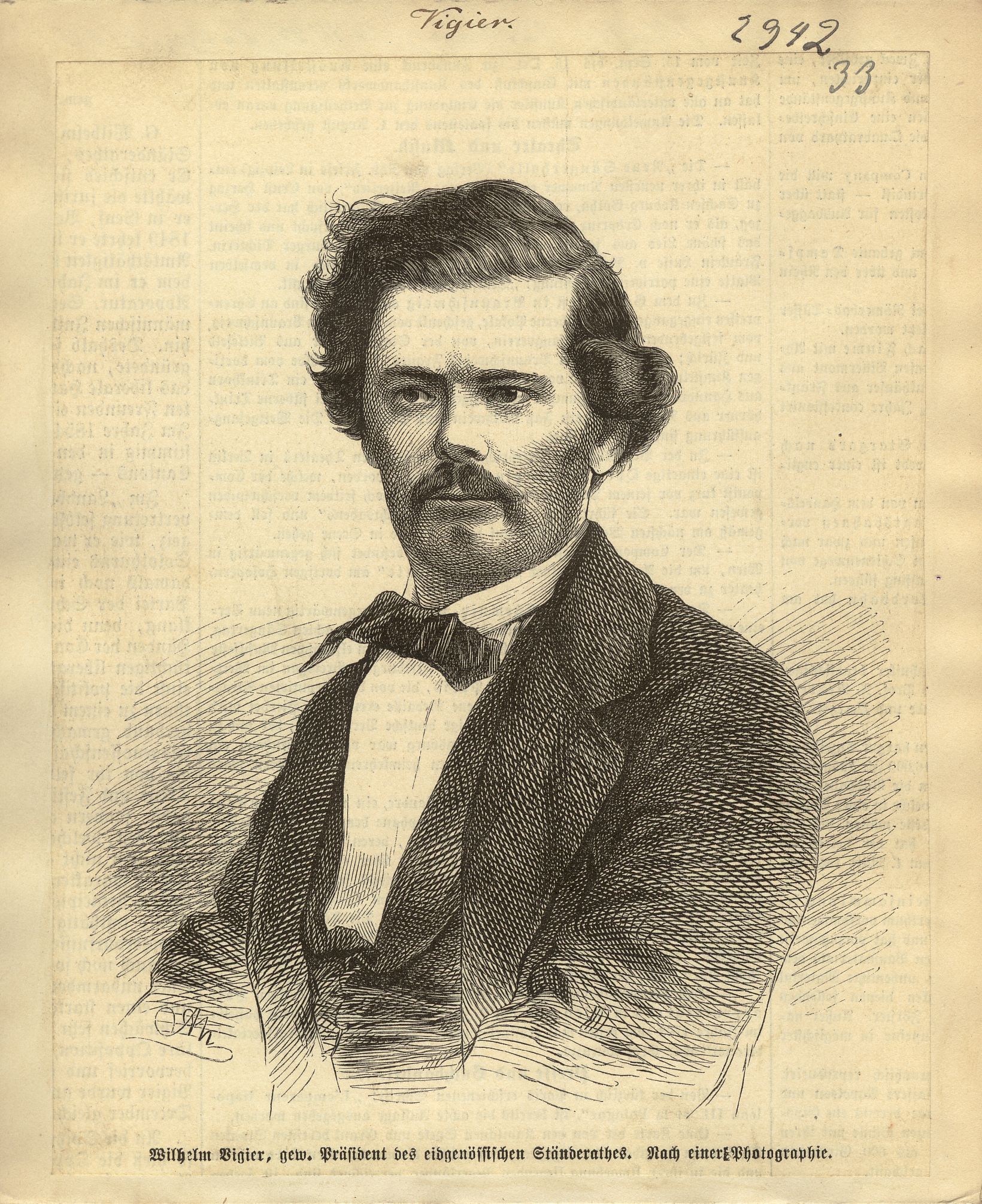 gew. Präsident des eidgenössischen Ständerathes ; Nach einer Photographie ; [Brustbild nach links]