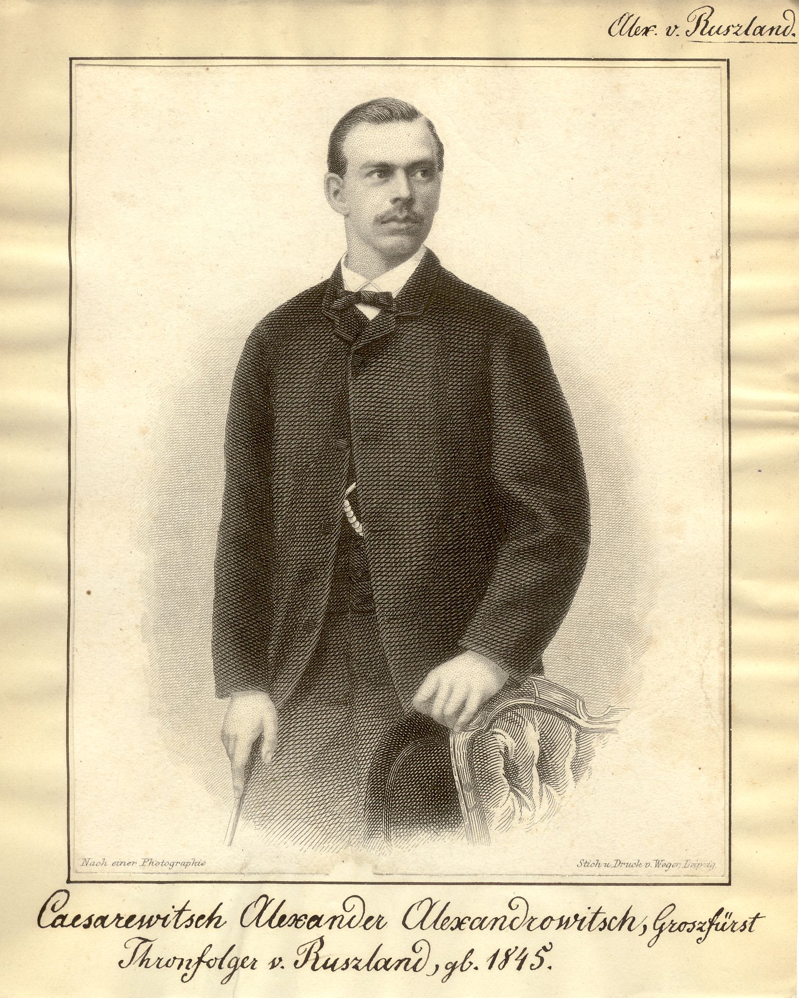 Groszfürst, Thronfolger v. Ruszland, gb. 1845 ; Nach einer Photographie ; [Dreiviertelfigur leicht nach links, Kopf nach rechts gewandt]