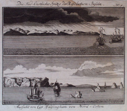 Die Süd-Oestliche Spitze der Resolution-Inseln. Aussicht von Cap Walsingham von Nord-Osten