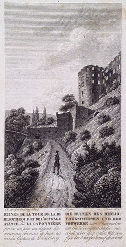 Ruines de la Tour de la Bibliothèque et de l'ouvrage avancé dit la caponnière = Die Ruinen des Bibliotheksthurmes und der Vorwerke zum Thiergarten am Heidelberger Schlosse