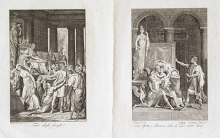 [Zwei Abschiedsszenen: "Für diese sorget!" und "Gutes armes Kind! Die Götter schützen dich, da ich's nicht kann."]