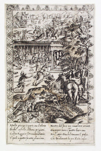 [Kampf von Spaniern (?) gegen Indianer um einen Palast]