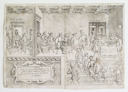 [Bedienstete beim Auftragen von Speisen und Getränken für die Kardinäle beim Konklave]