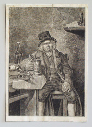 [Mann mit Bierkrug an einem gedeckten Tisch]