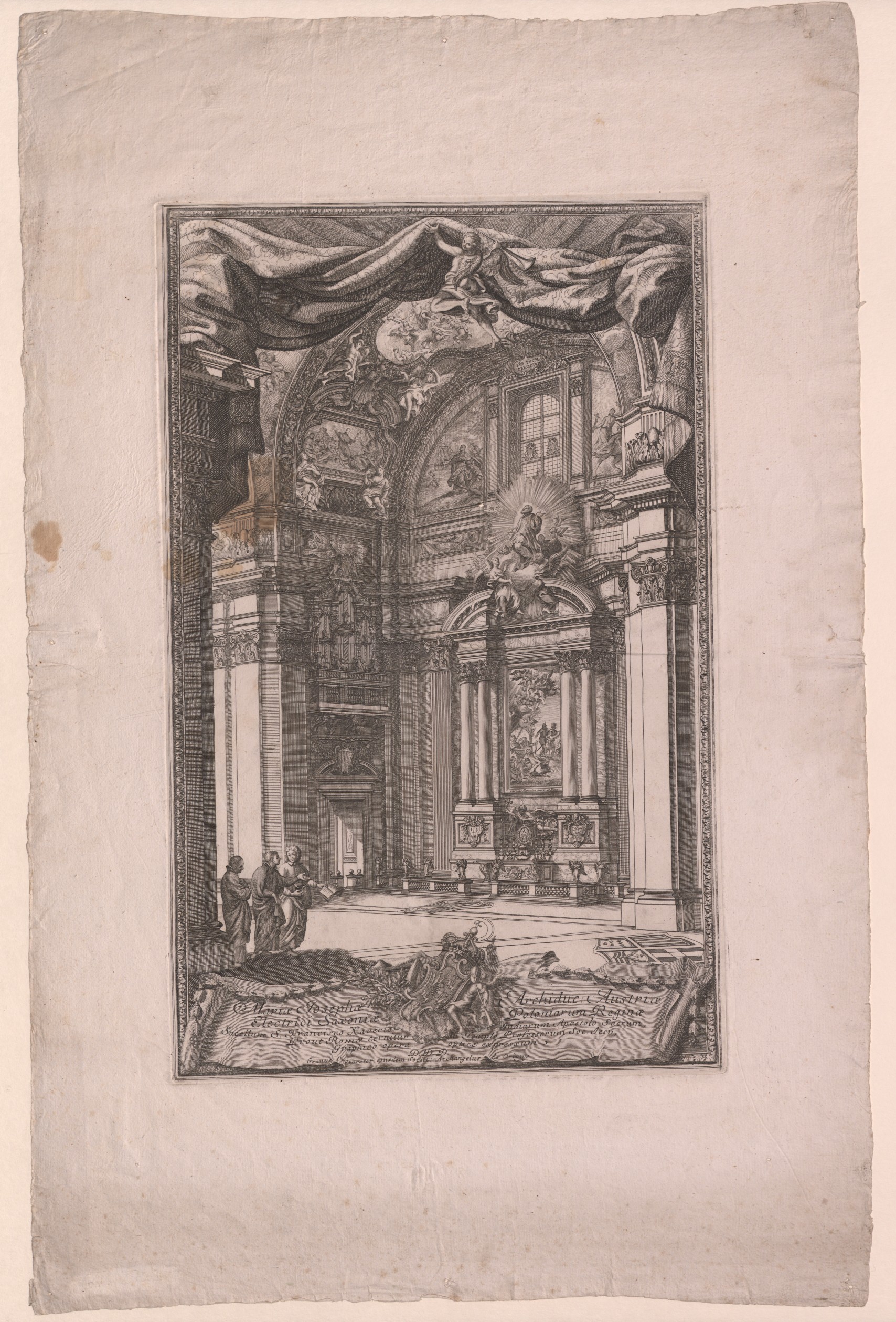 Mariae Josephae Archiduc. Austriae Electrici Saxoniae Poloniarum Reginae Sacellum S. Francisco Xaverio Indiarum Apostolo Sacrum, Prout Romae cernitur in Templo Professorum Soc. Jesu, Graphico opere oplice expressum D. D. D. Goanus Procurator eiusdem Societ. Archangelus de Origny