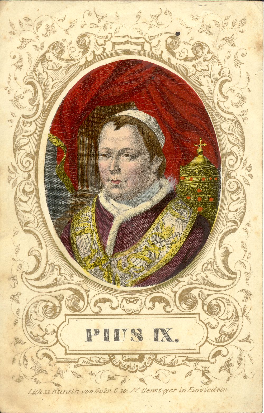 Farblithographie; 7,2 x 5,6 cm (Portrait, oval) bzw. ca. 12 x 7,8 cm (ornamentaler Rahmen). - Stock- und andere Flecken. - Provenienz: Zentralbibliothek der Bayerischen Kapuziner, Altötting. - MIT DIGITALAUFNAHME