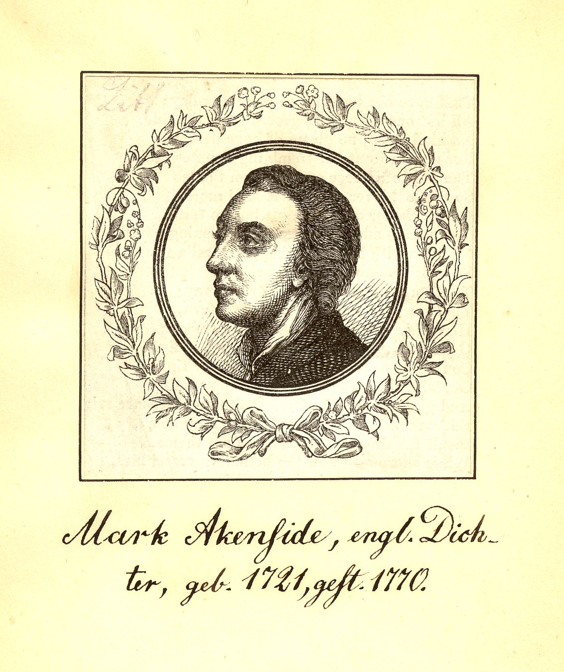 engl. Dichter, geb. 1721, gest. 1770 ; [Dreiviertelprofil nach links im Medaillon mit Pflanzenrahmen]