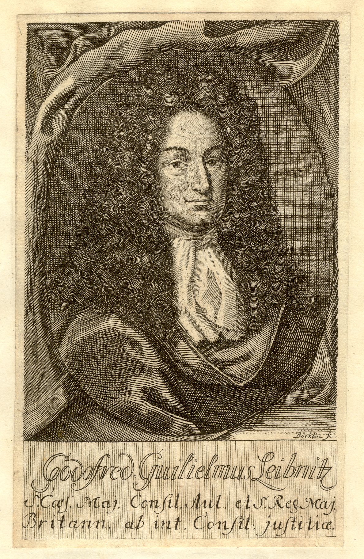 Frontispiz zu: Feller, Joachim Friedrich (Hrsg.): Otium Hanoveranum Sive Miscellanea, Ex ore & schedis ... Godofr. Guilielmi Leibnitii ... quondam notata et descripta ... - Leipzig : Johann Christian Martini, 1718. - Vgl.: Katalog der graphischen Porträts in der Herzog August Bibliothek Wolfenbüttel 1500-1850, Reihe A: Die Porträtsammlung, Nr. A 12259. - S.a.: Allgemeiner Porträt-Katalog / hrsg. von Hans Dietrich von Diepenbroick-Grüter, S. 445, Nr. 14873. - Singer, Hans Wolfgang: Allgemeiner Bildniskatalog, Nr. 52500 u. 52527. - Hollstein, F. W. H.: German engravings, etchings and woodcuts, Bd. IV, S. 128, Nr. 57