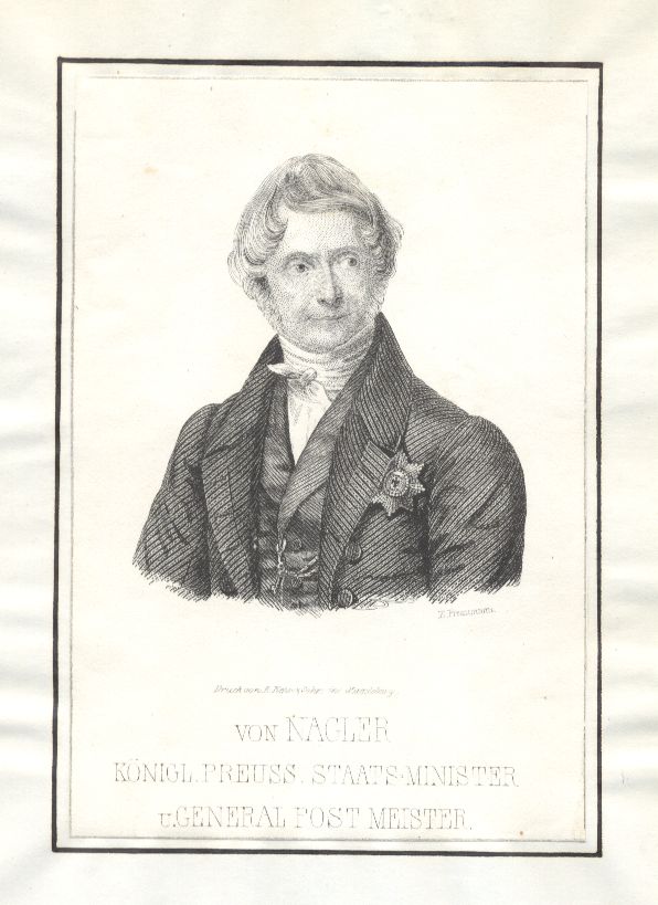 Königl. Preuss. Staats-Minister u. General Post Meister ; [Brustbild nach links, Kopf nach rechts gewandt]