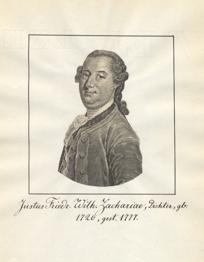 Vollständiges Blatt verwendet als Frontispiz in: Sammlung vermischter Schriften zur Beförderung der schönen Wissenschaften und der freyen Künste, 2. Bd., 1. Stück. - Berlin : Nicolai, 1759. - Vgl.: Katalog der graphischen Porträts in der Herzog August Bibliothek Wolfenbüttel 1500-1850, Reihe A: Die Porträtsammlung, Nr. A 24663. - S.a.: Allgemeiner Porträt-Katalog / hrsg. von Hans Dietrich von Diepenbroick-Grüter, S. 892, Nr. 28970. - Singer, Hans Wolfgang: Allgemeiner Bildniskatalog, Nr. 98952
