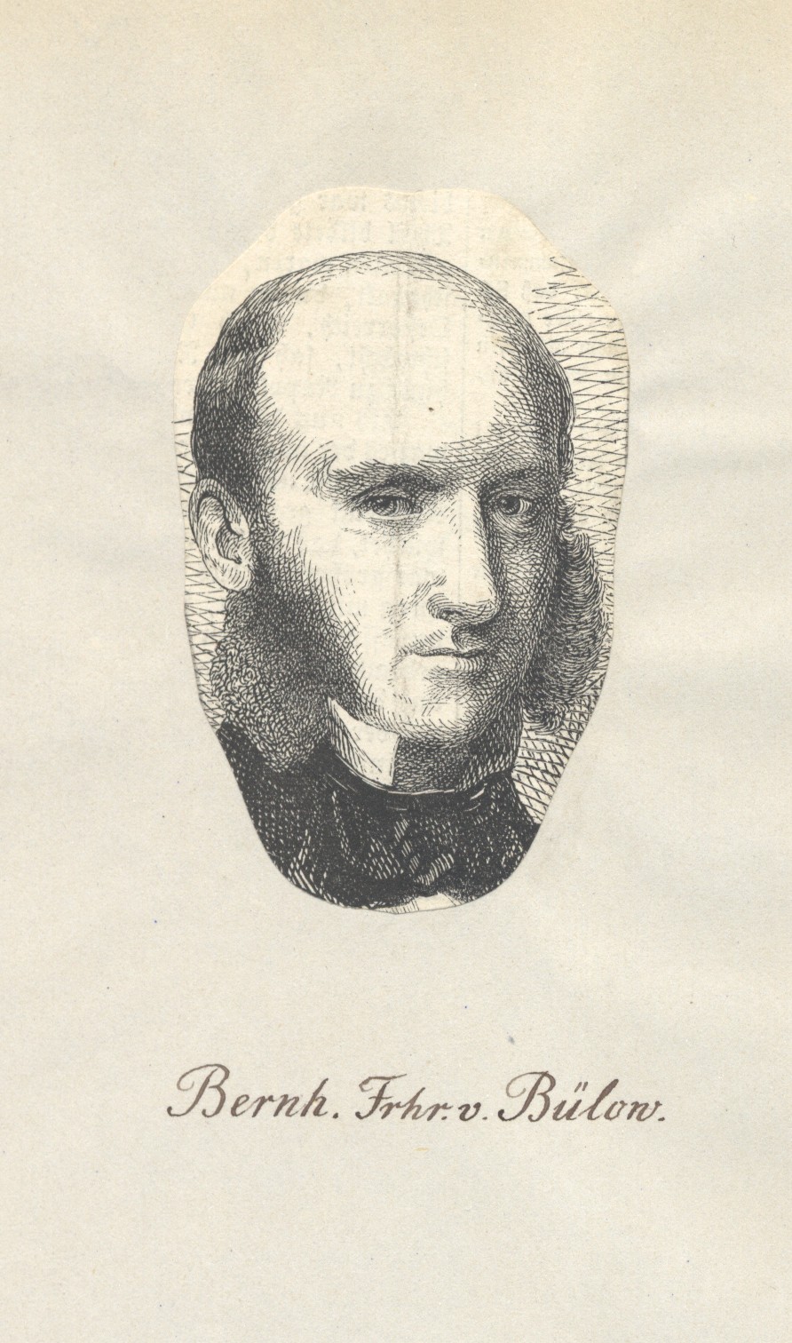 Ausgeschnitten aus: Die deutschen Bundestagsgesandten : [17 Porträts] / Nach Photographien von V. Schertle in Frankfurt gezeichnet von A. Neumann. - In: Illustrirte Zeitung. - Leipzig. - Band XLI, No. 1054 vom 12. September 1863, S. 196. - Vgl.: Singer, Hans Wolfgang: Neuer Bildniskatalog, Nr. 4481 (falsch unter Bülow, Bernhard Ernst von)