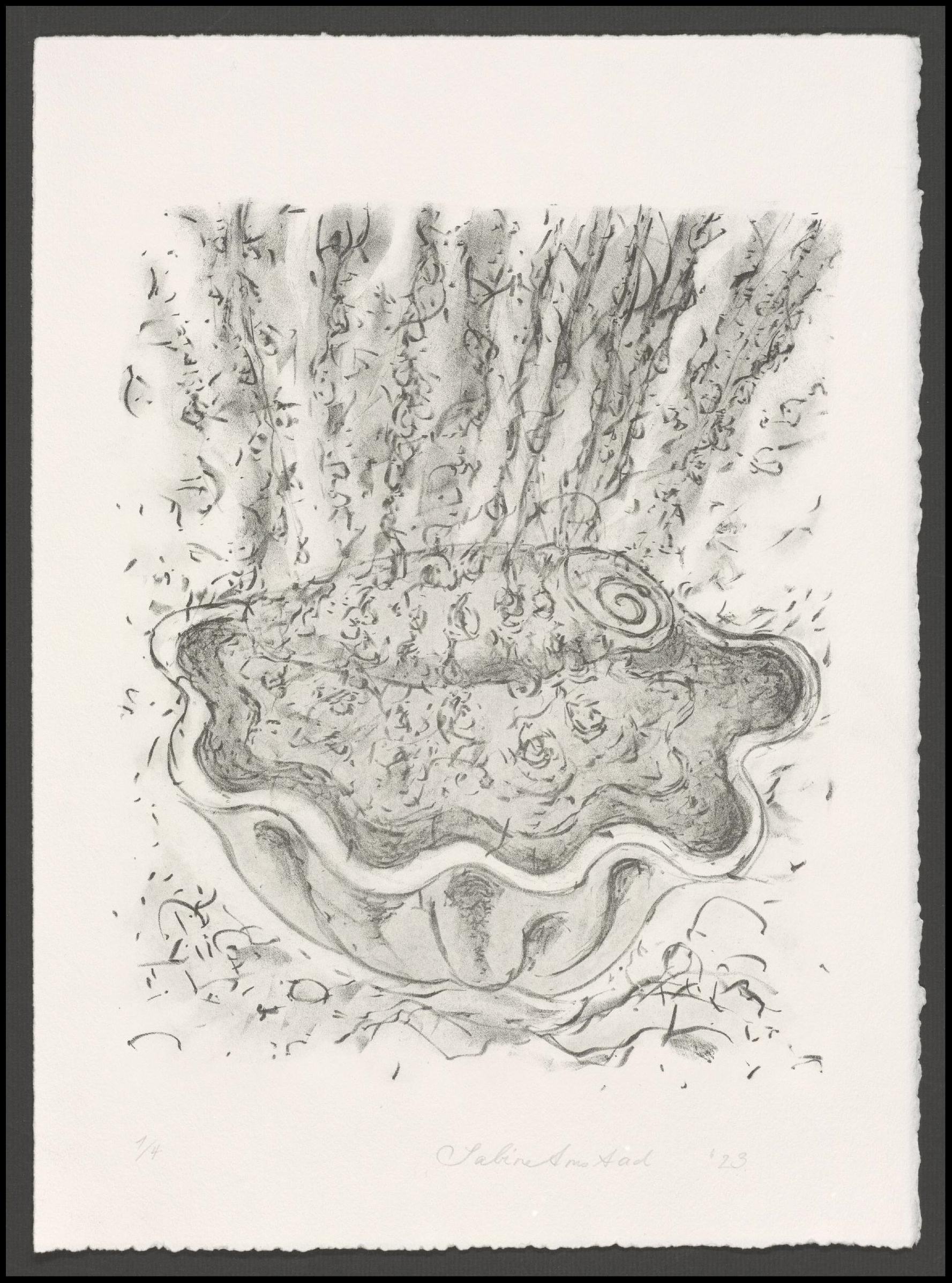 Kreidelithographie; ca. 28,2 x 23,3 cm (Bild) bzw. 38,6 x 28,4 cm (Blatt). - Von der Künstlerin auf der Rückseite mit Bleistift bezeichnet, auf der Vorderseite datiert, numeriert (1/4) und signiert. - MIT DIGITALAUFNAHME