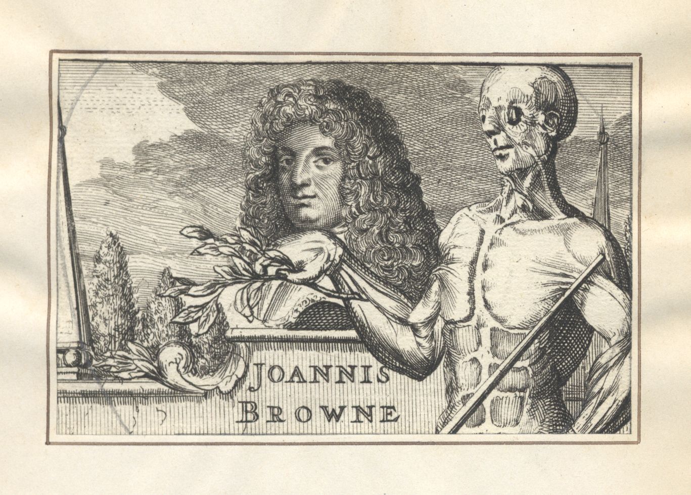 Aus einem Titelblatt mit der Inschrift: Joannis Browne Regii Chirurgi ordinarii Myographia Nova editio noviss. ... - Apud Ioannem Wolters Bibl. Amstelodamensem. 1691